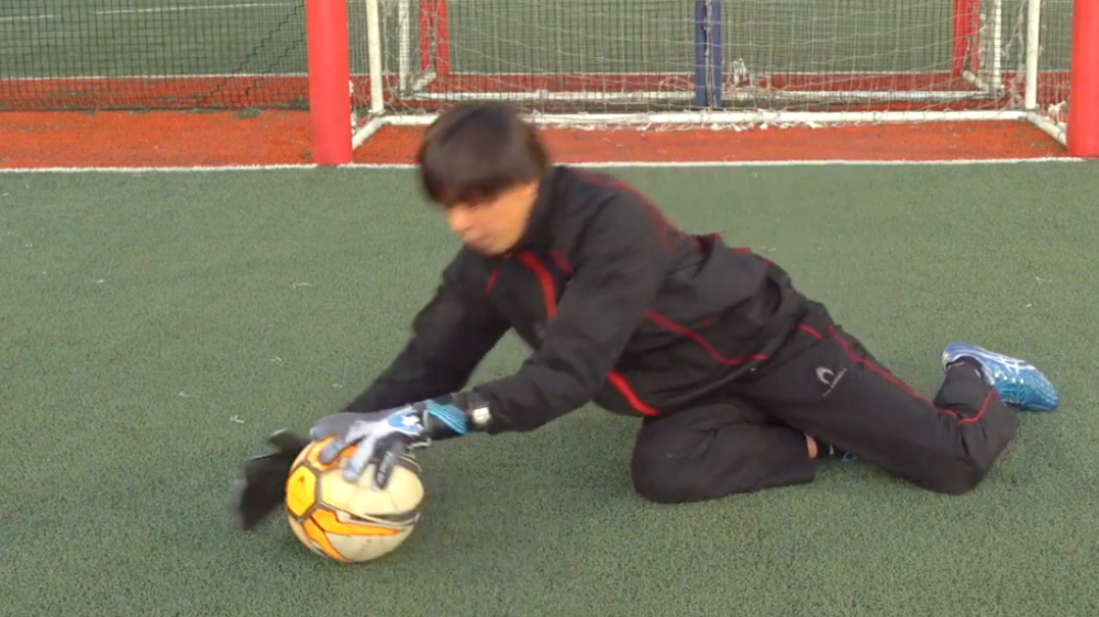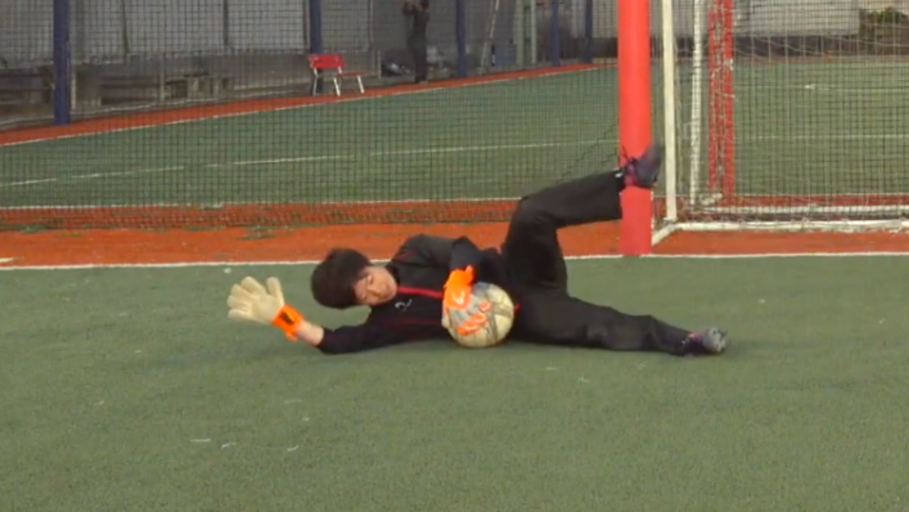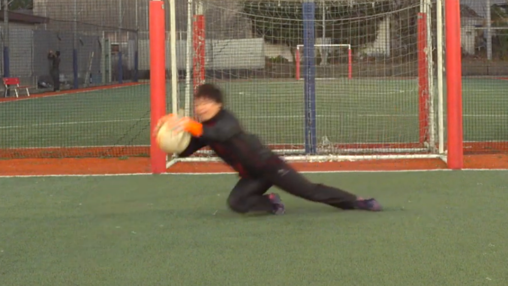 通常、ローリングダウンなどのダイビング技術をキャッチしたときにはボールを地面に押さえる、救い上げるなど、何らかしらの動きを行う。
