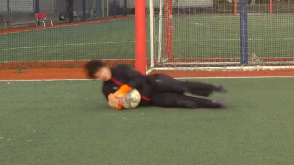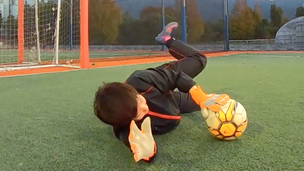 ダイビング時にボールを3点で押さえる。