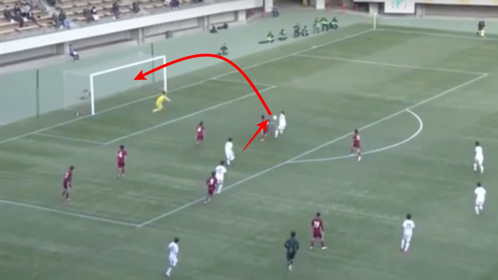 ボールが大きく浮いていれば、手が使えるゴールキーパーの方が有利であり、インターセプトできるチャンスが生まれます。