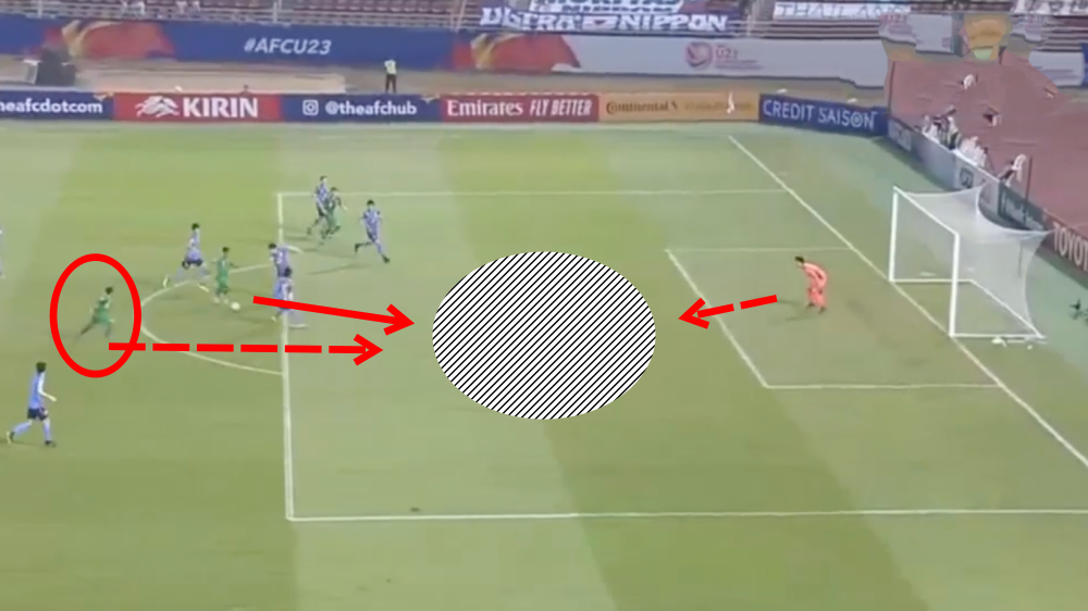 果たしてパワーを持った後ろの選手が走り込んできた時、リアクション側のゴールキーパーが前に出てインターセプトができただろうか?できるのだろうか?