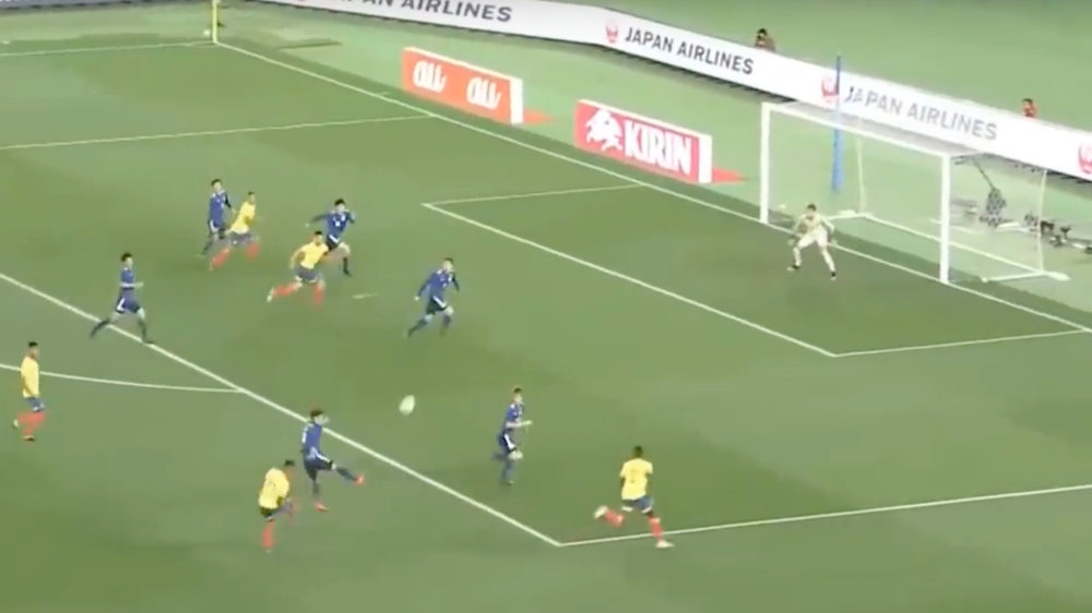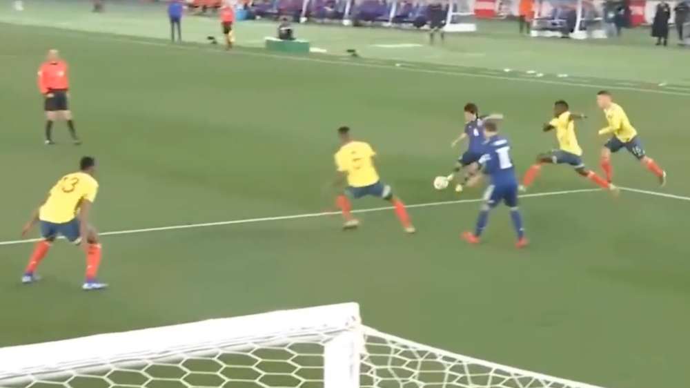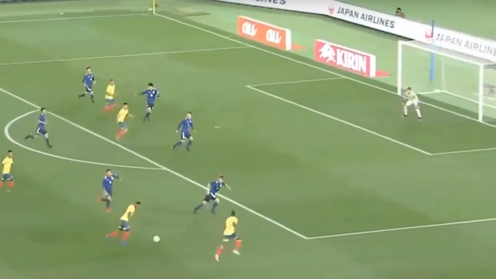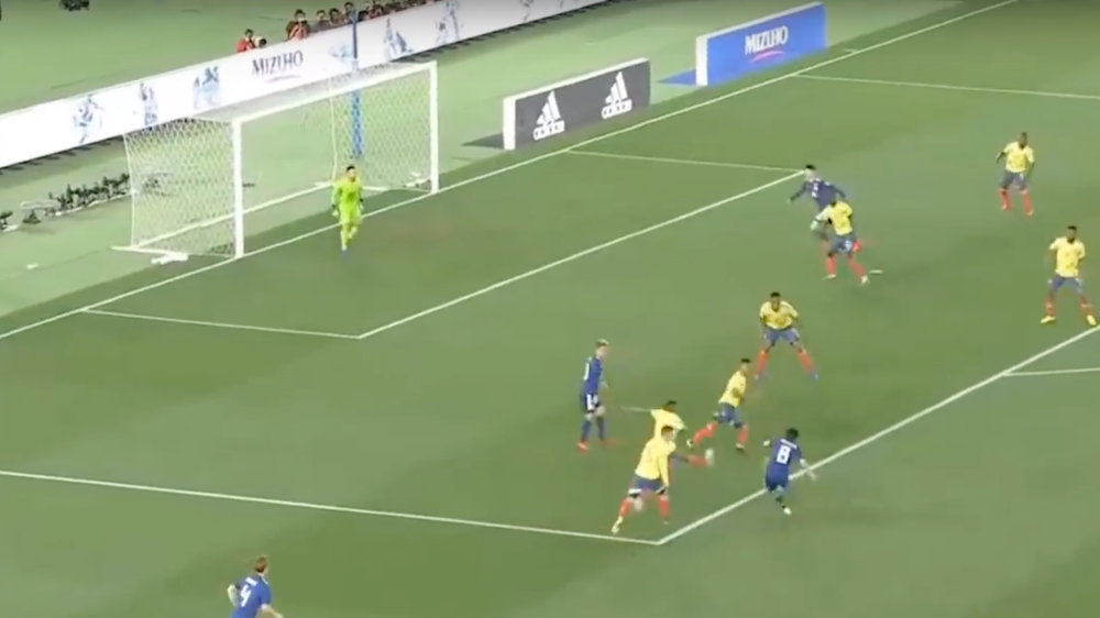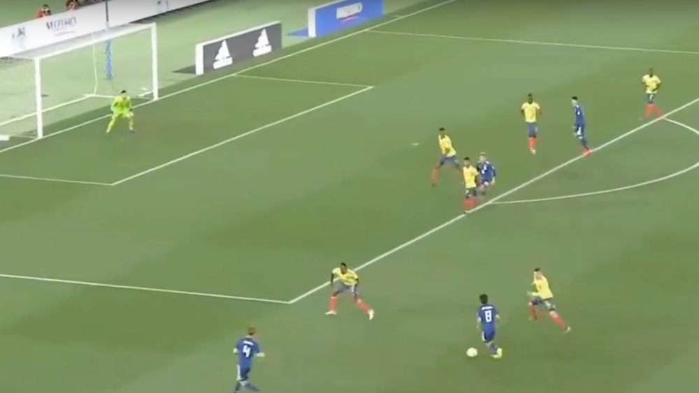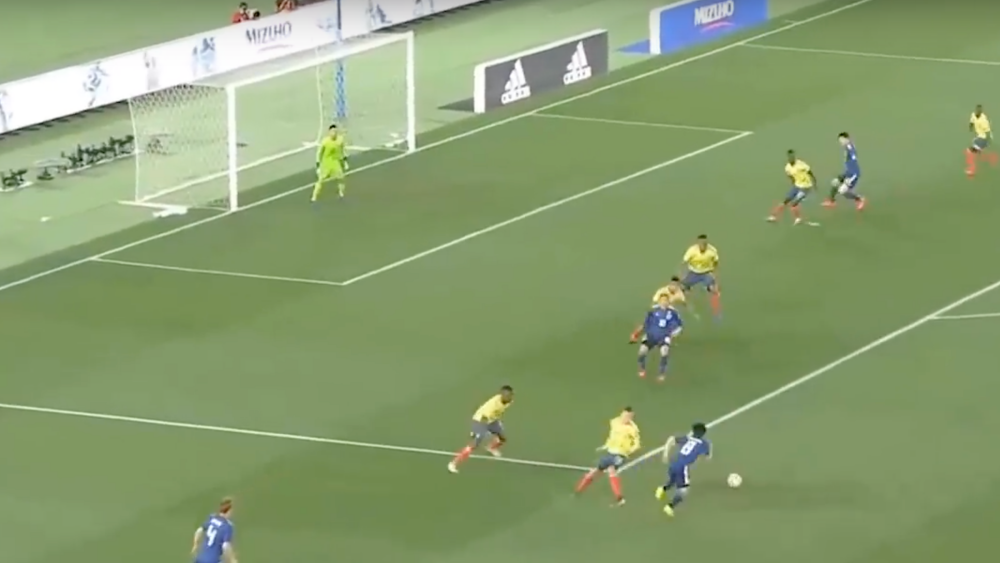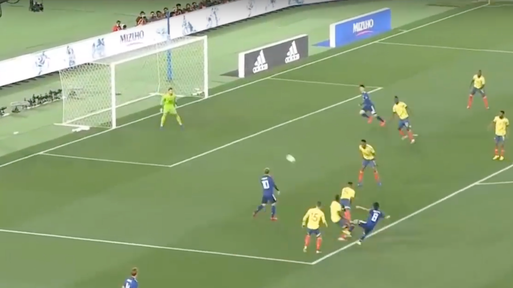 日本代表の中島翔哉選手がシュートを打った場面はDFが3人も入れ、ここぞというところからのシュートですね。