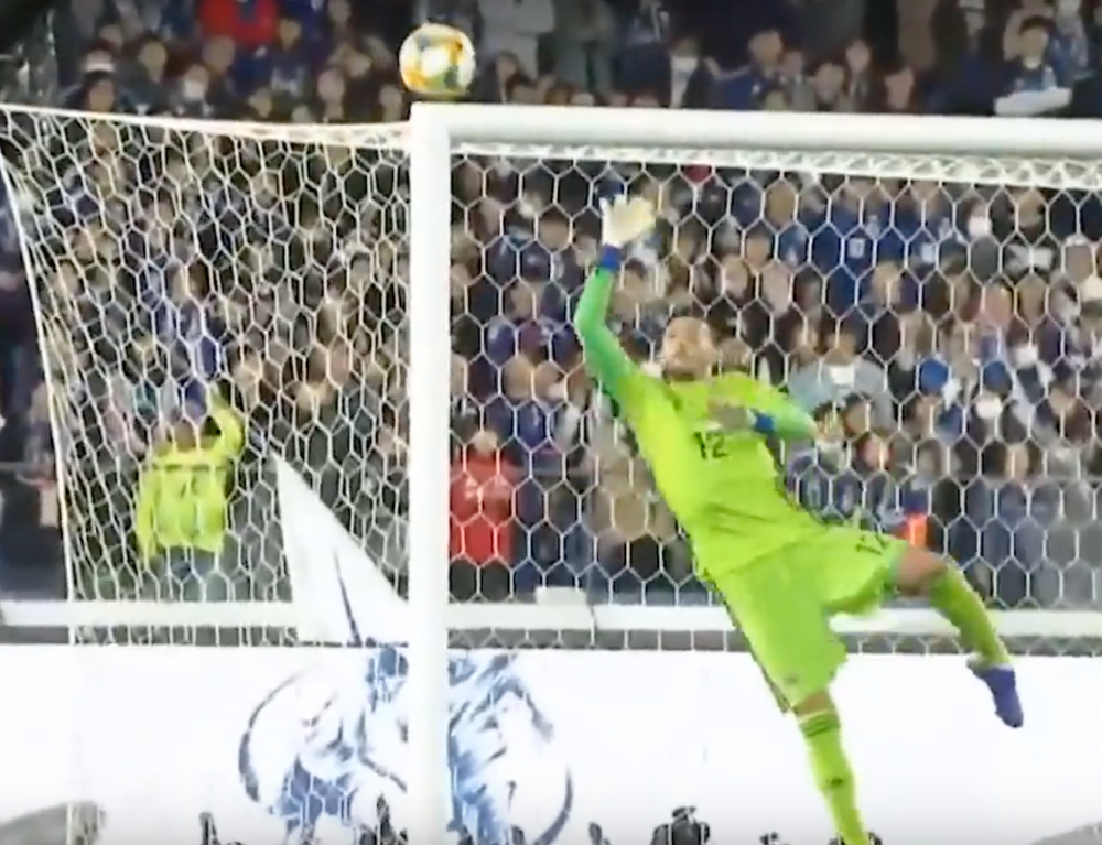 ギリギリだったため、本当に指先で触るくらいでしたが、それがあったからこそポストにあたり、外にボールが出たと言えるでしょう。