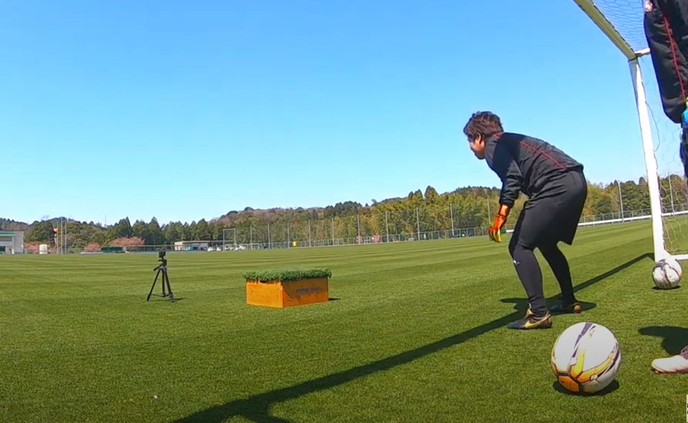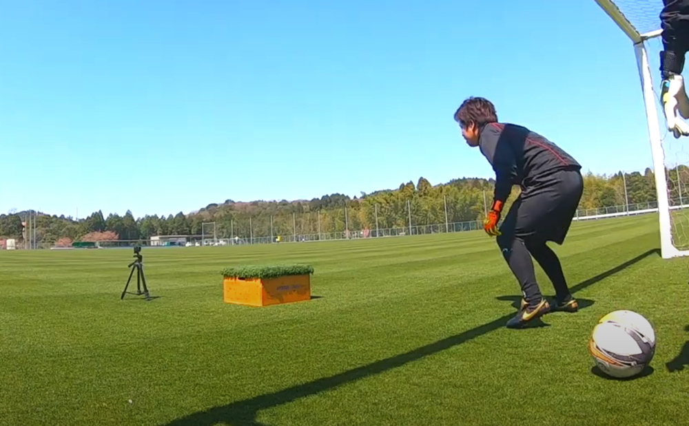まずは単純にこの台に当てて跳ね返ったボールに対してシュートストップを行います。