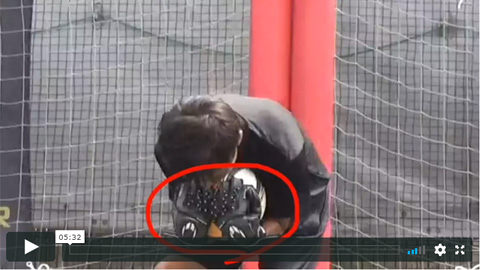 もう一つは上半身がたってしまい、ボールが胸に当たるというミスです。