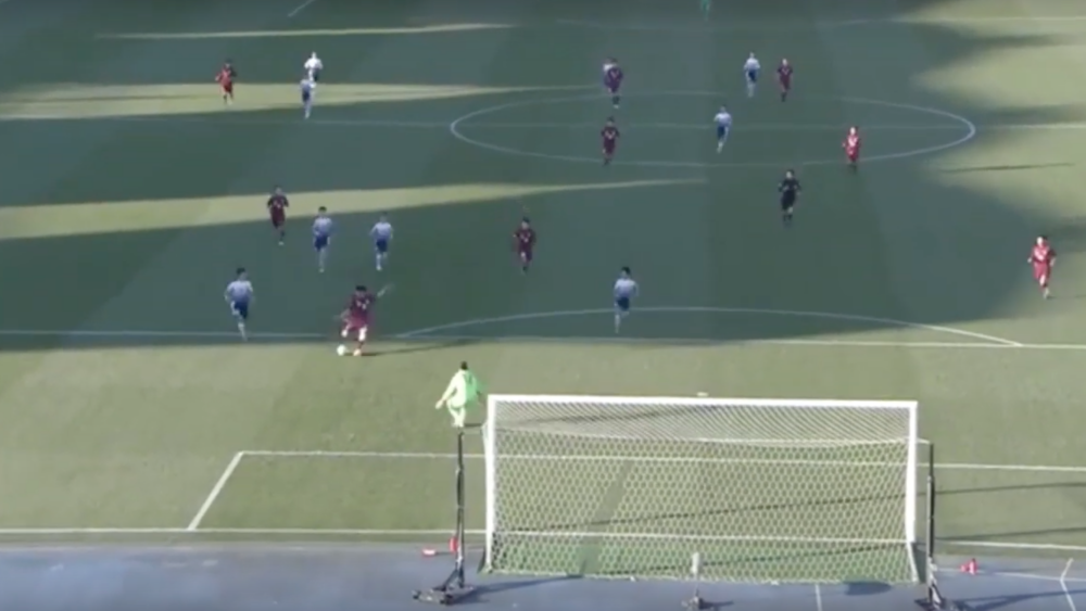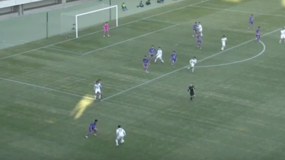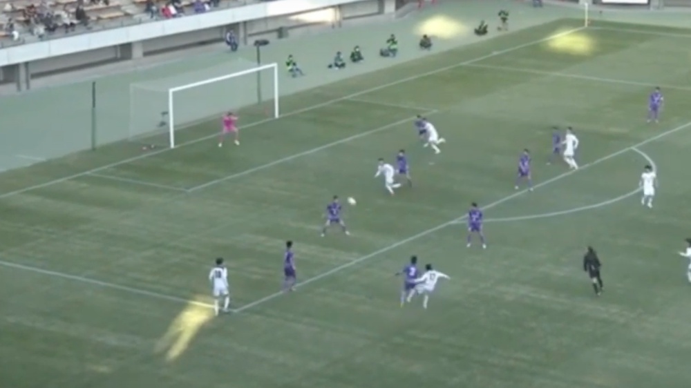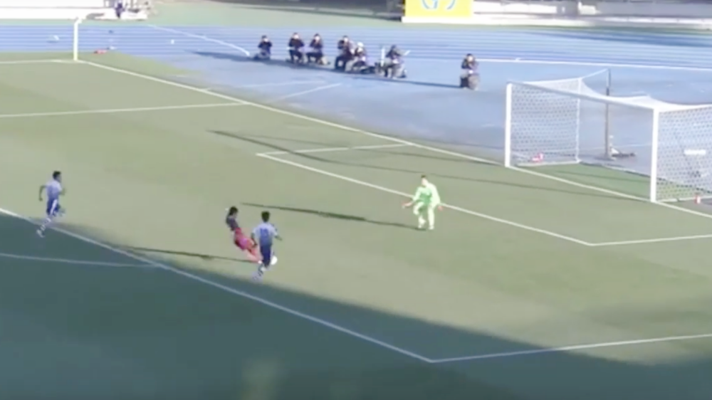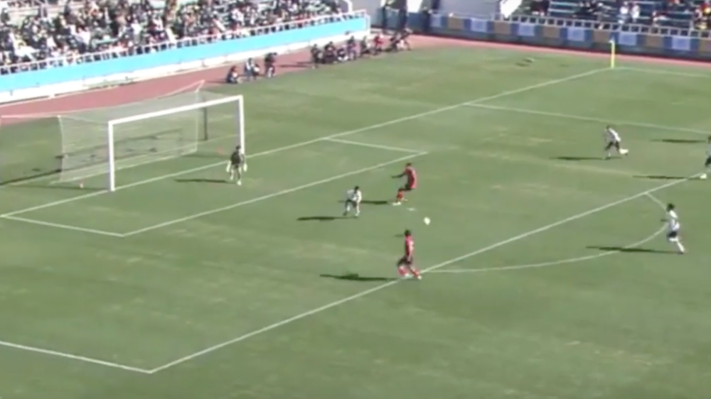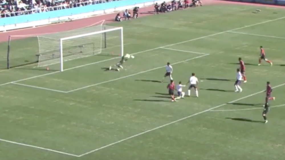 違う角度ですが、シュートモーションの時にゴールキーパーの長崎勇也選手がしっかりと構えようとしてるのがわかりますよね!