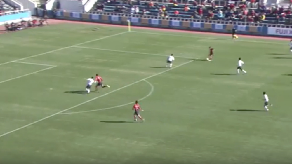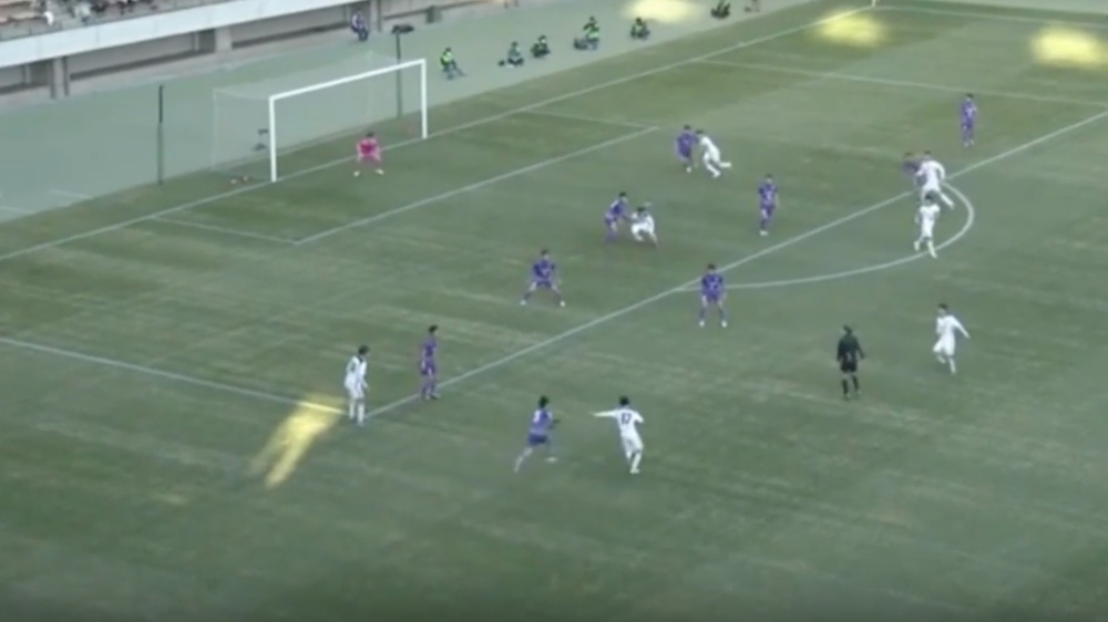 裏へ抜け出し、3vs2+GKという状況でファーでフリーが1人で来てしまった状況。