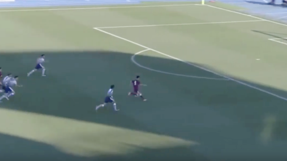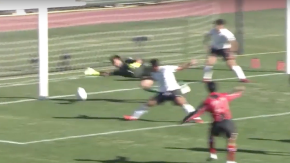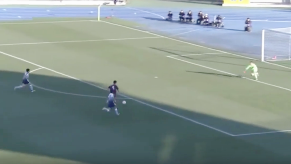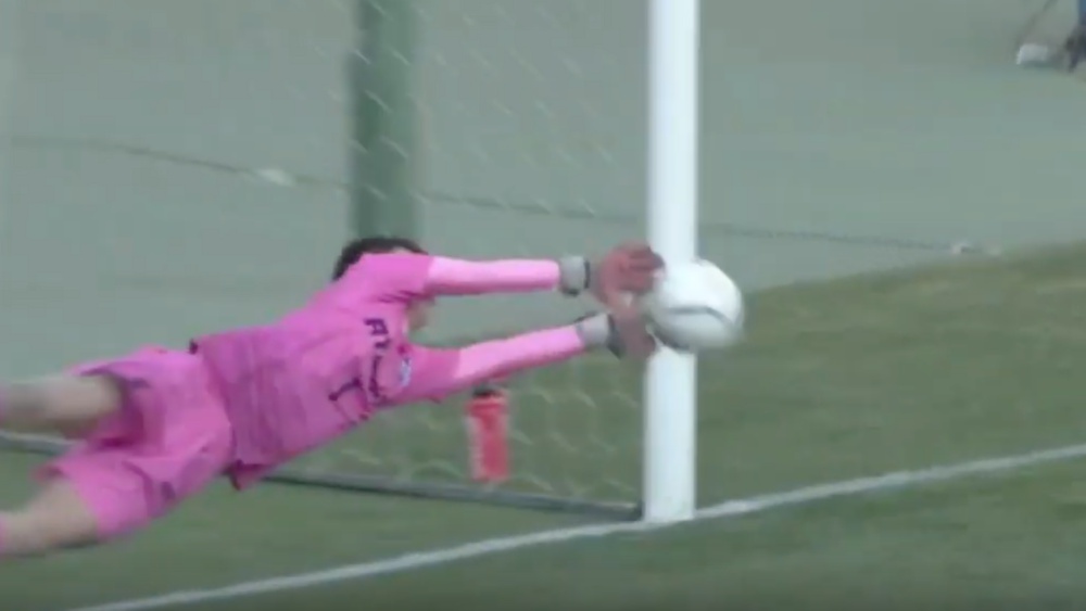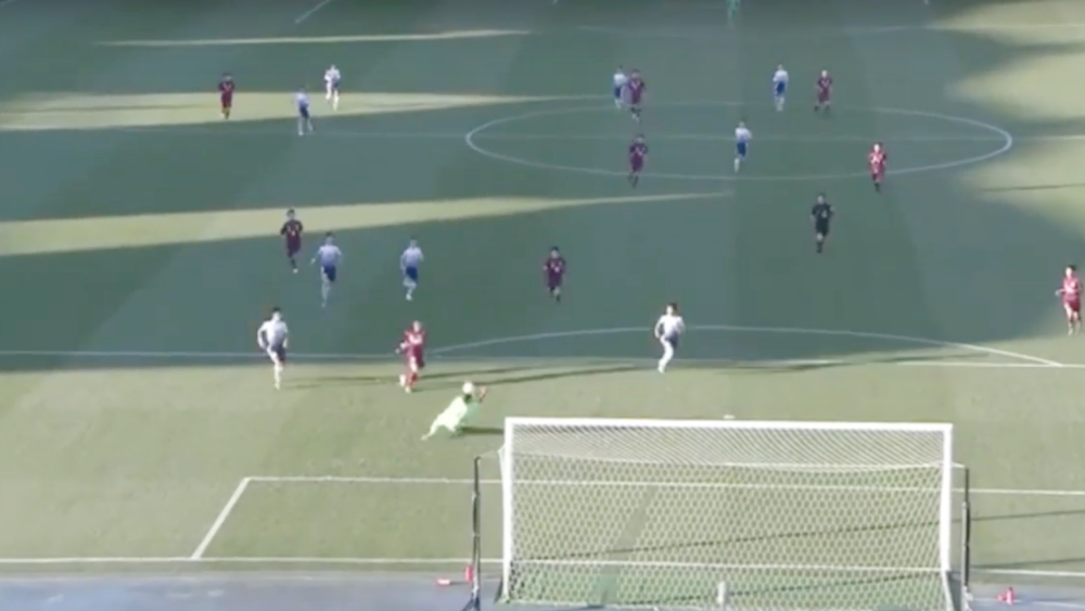 シュートがゴールにまで届くには少し距離があったため、しっかりと踏み込んでダイビングしている動きもよくわかります。