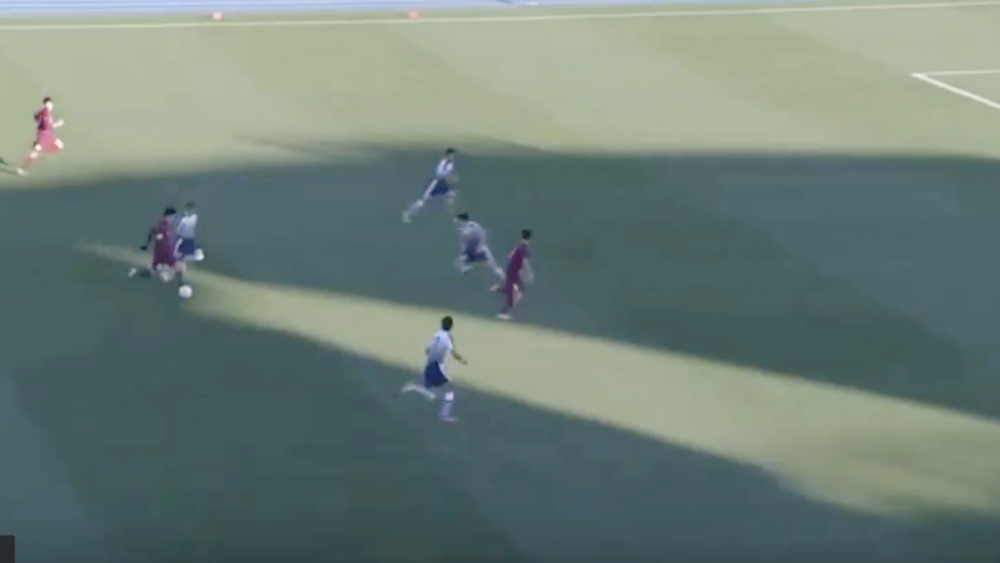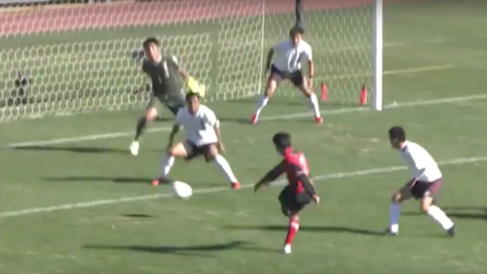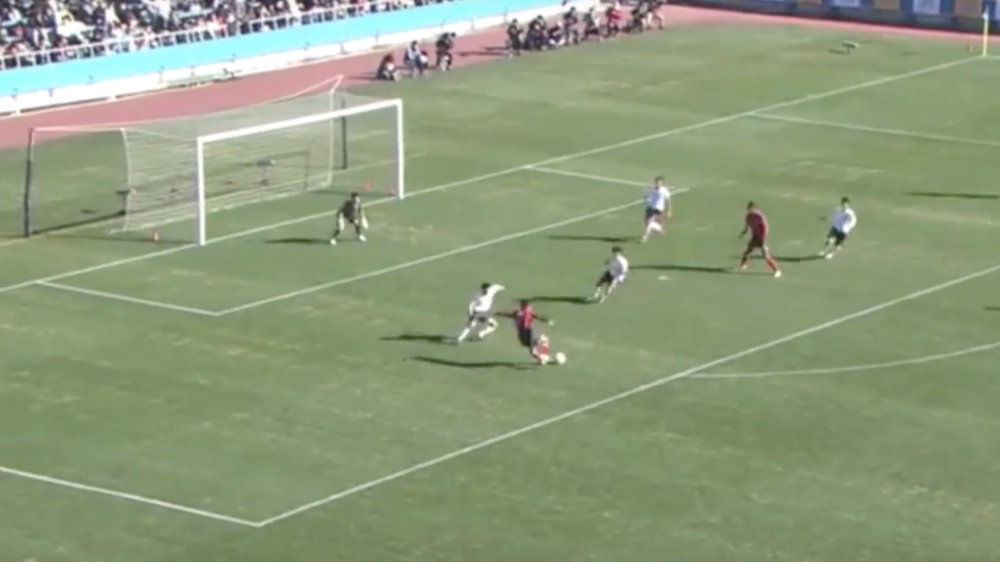 逆にそのスピードの落ちたドリブルがゴールキーパーにとっては有利に働く状況でした。
