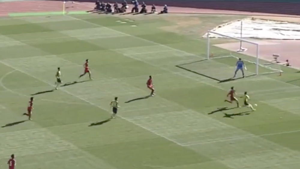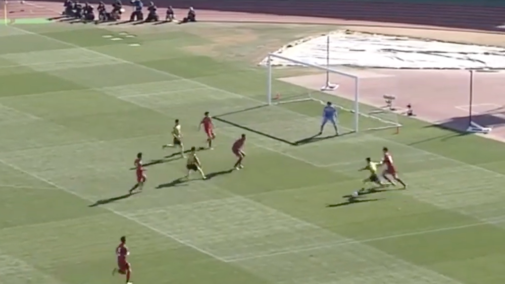 左足に持ち替えた時、ぽっかりとDFのギャップが空いてしまい、シュートコースが一気にできてしまいました。