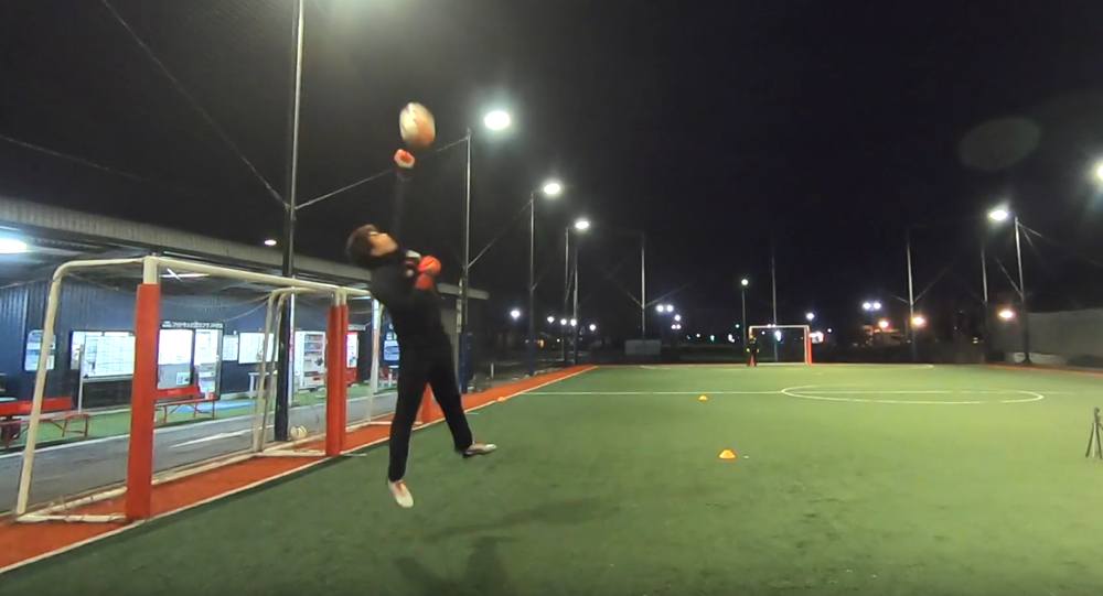 相手よりも手が使えるゴールキーパーは、空中戦では絶対的有利になります。