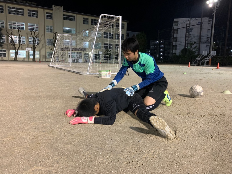クレーグラウンドで行うこともあるが、そのときにはクレーグラウンドに対して痛みを伴うこともあるので、パット入りのGKパンツを履いてほしい。