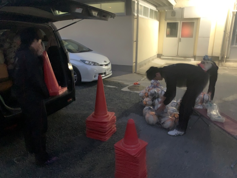 トレーニング会場に到着し、まずスタッフは準備に追われる。