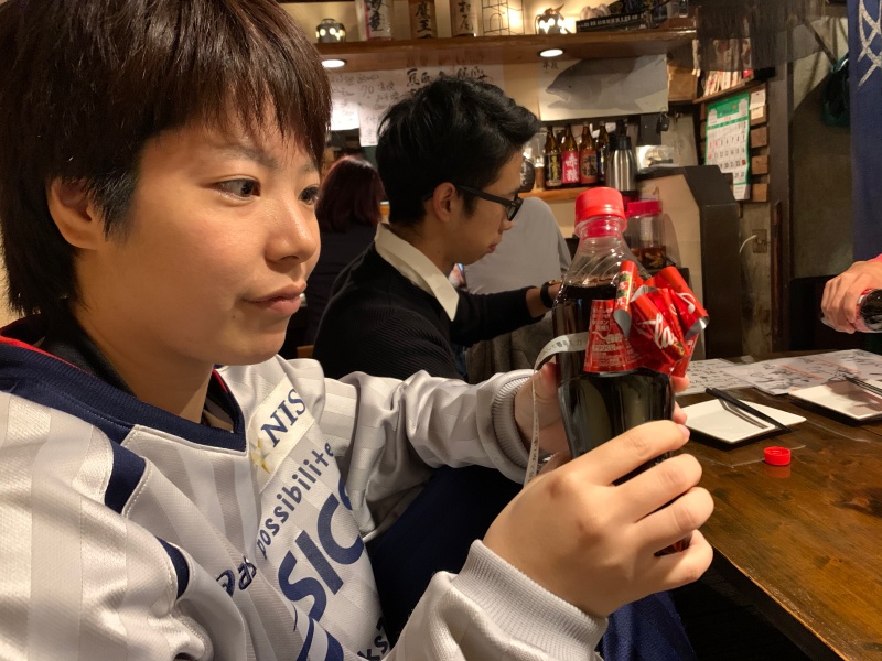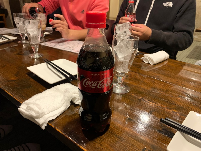 今回のトレーニングには鹿児島から福岡ゴールキーパースクールに視察に来られていたので、一緒に食事に行きましたが、そのときに頼んだコーラがクリスマス仕様!