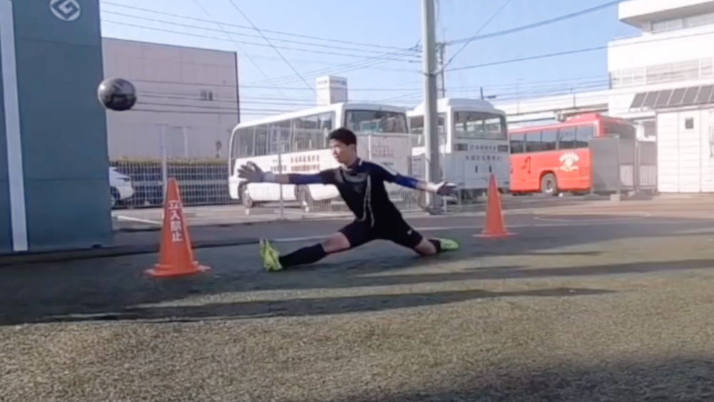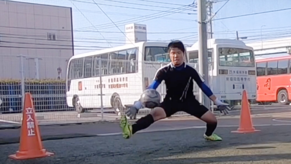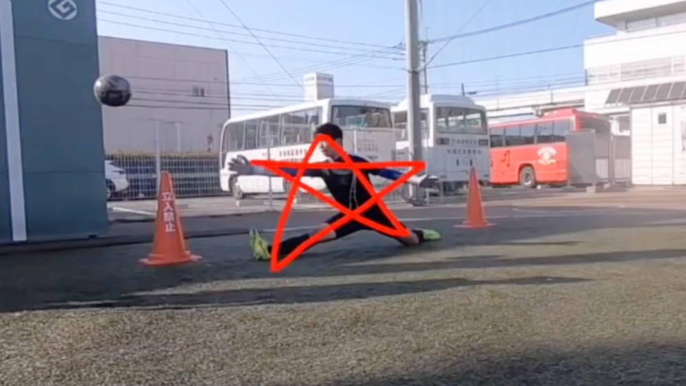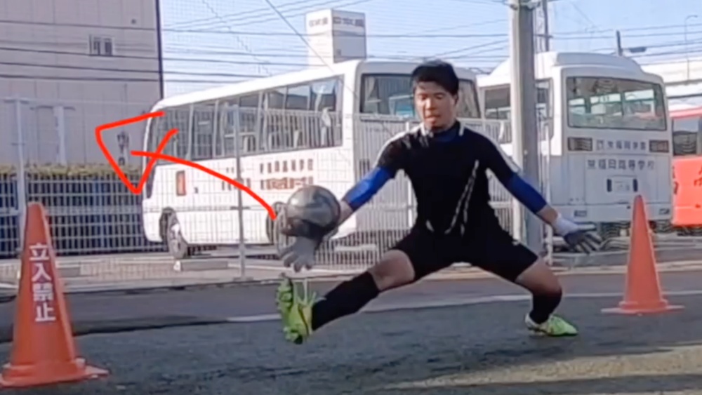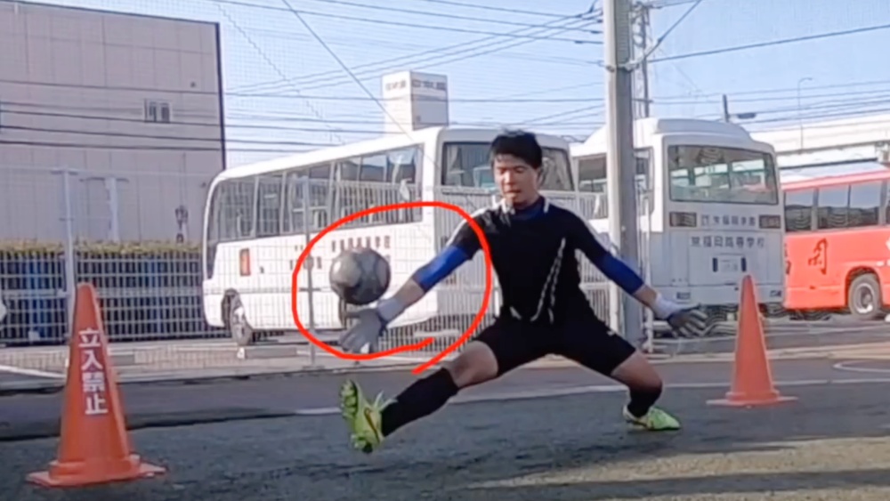 シュートされたボールを手に当て、できる限り遠くにはじきだします。