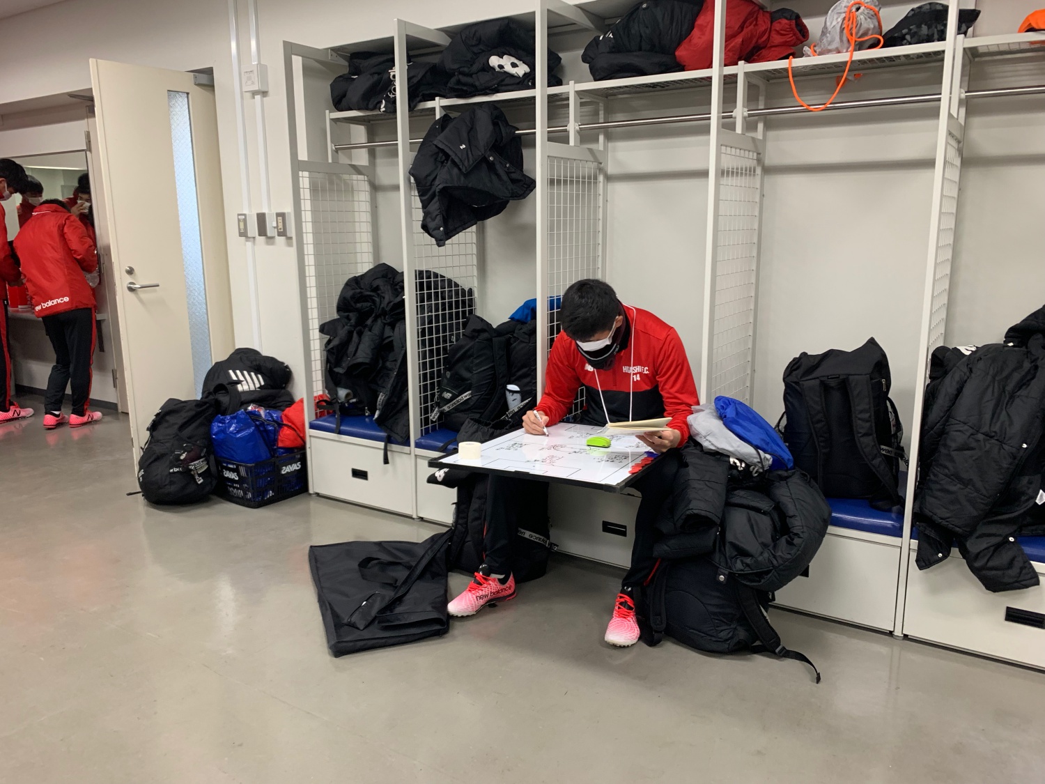 私はチームでセットプレーの分析も担当しており、尚志高のセットプレーについてミーティングで選手に伝えました。