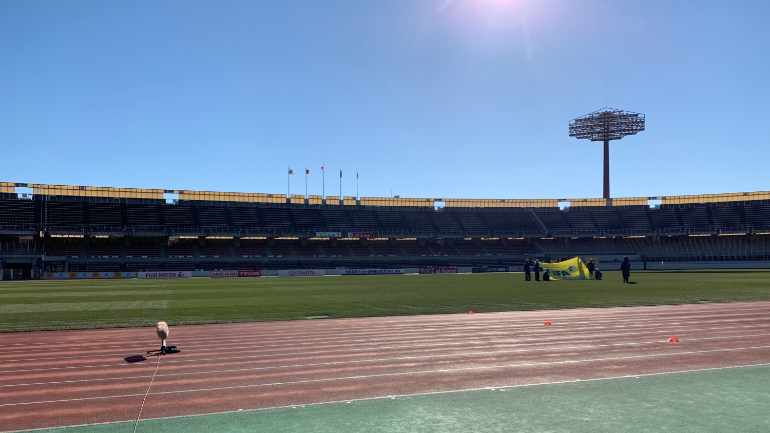 1回戦の NACK5スタジアム大宮と比べて、芝の芽が詰まっていてボールが止まるという印象でした。