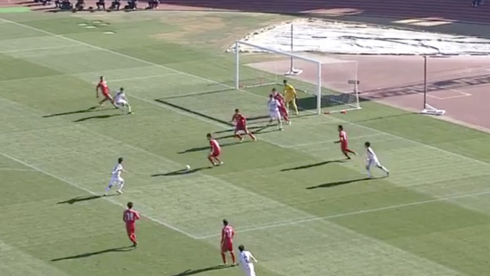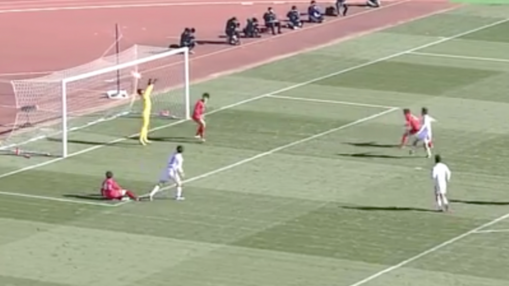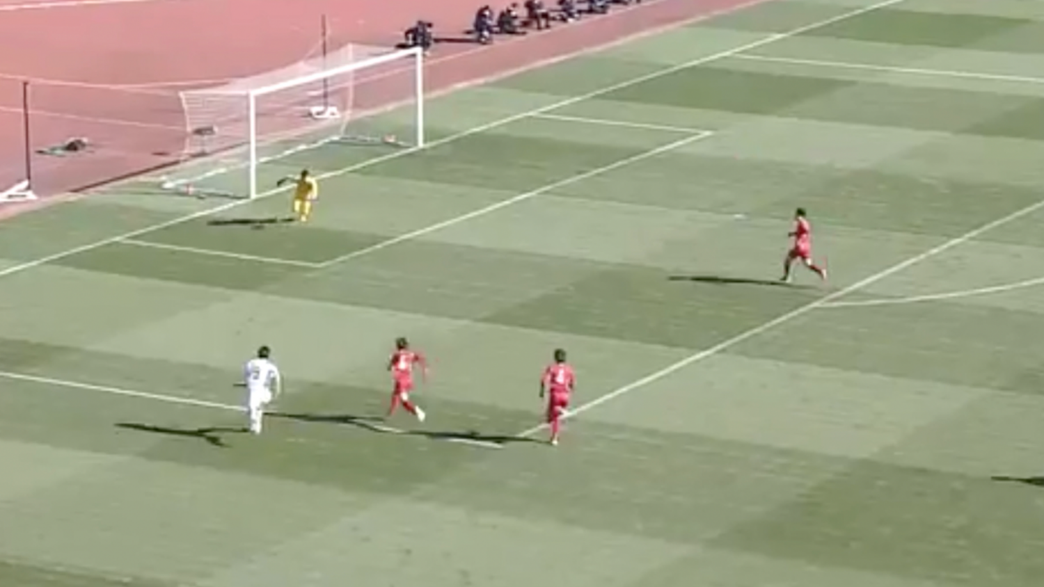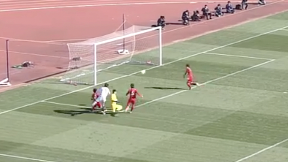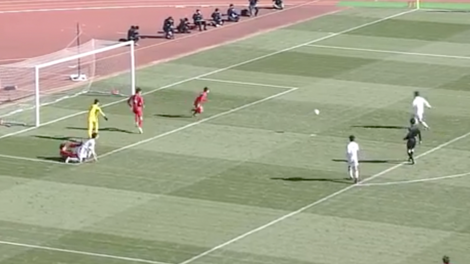 強烈なシュートに対してなんとか松田亮もボールに触ったものの、はじき出すことはできませんでした。