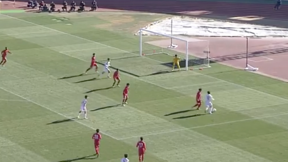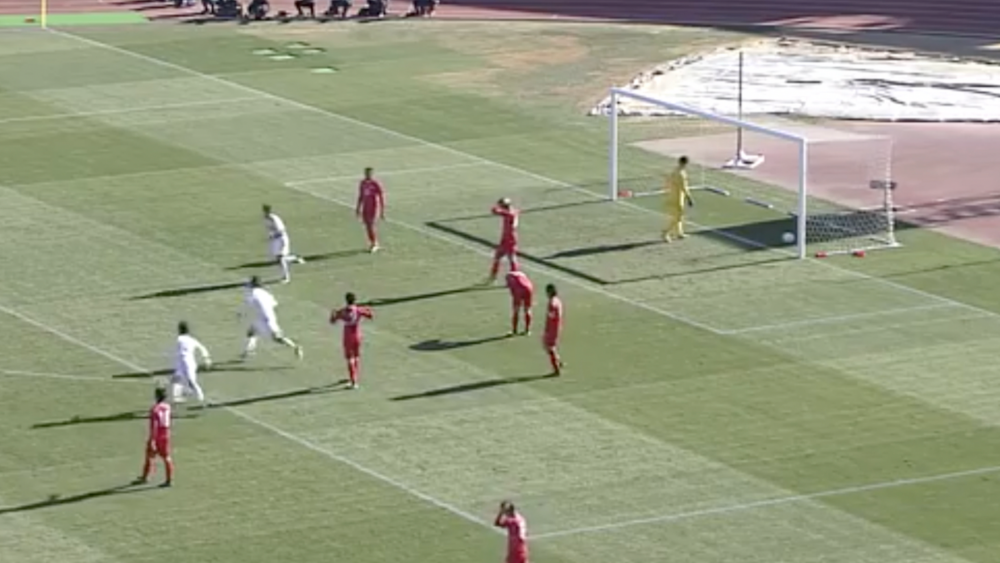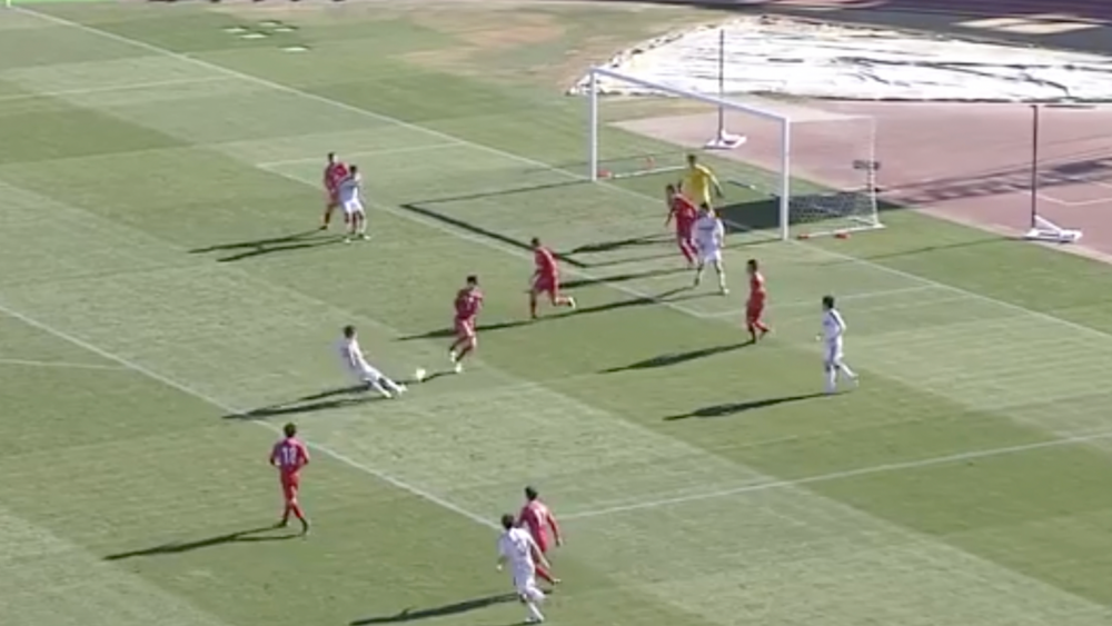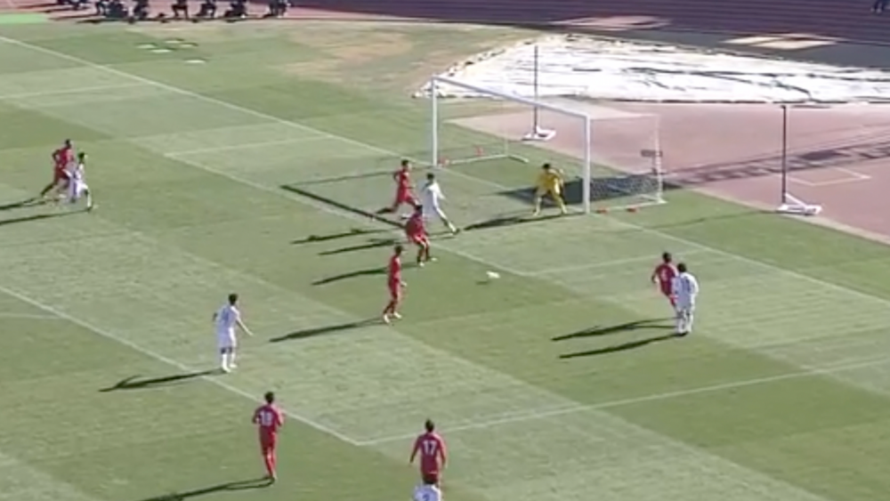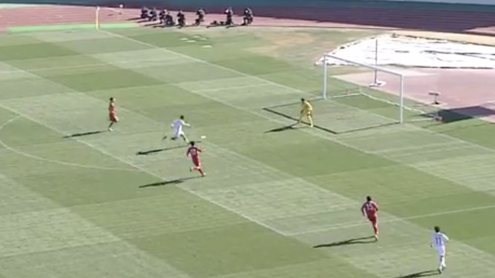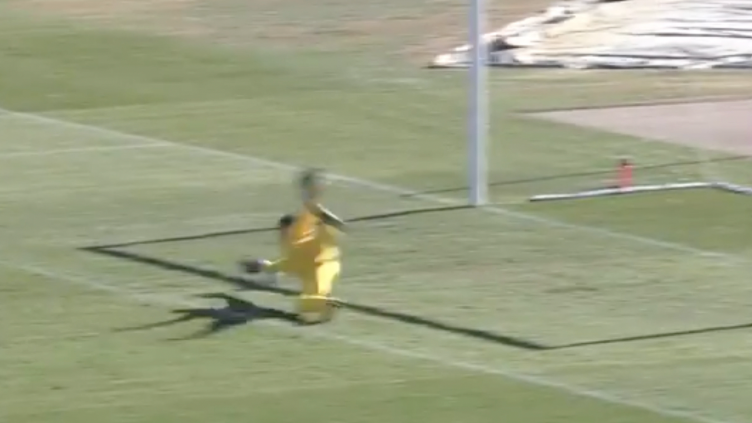 強烈なシュートに対してなんとか松田亮もボールに触ったものの、はじき出すことはできませんでした。