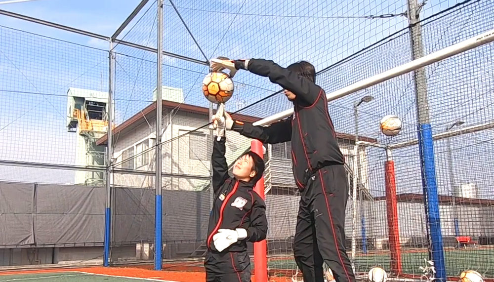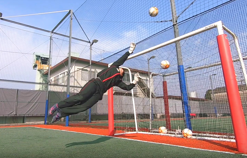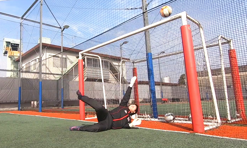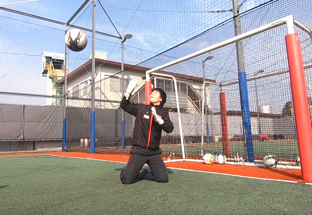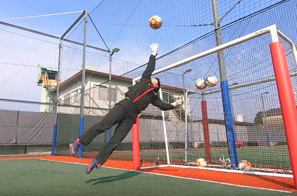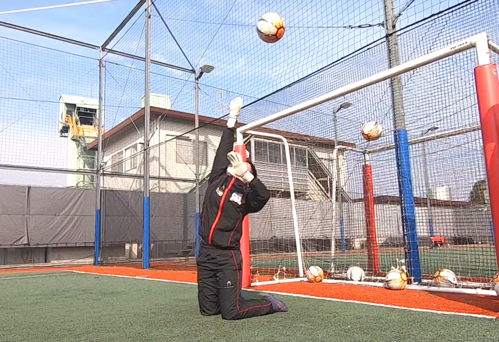 ループ気味の高いシュートに対して、対応能力を身につけるべきであり、それが今回お伝えする技術・クロスハンドでのディフレクティングになる。