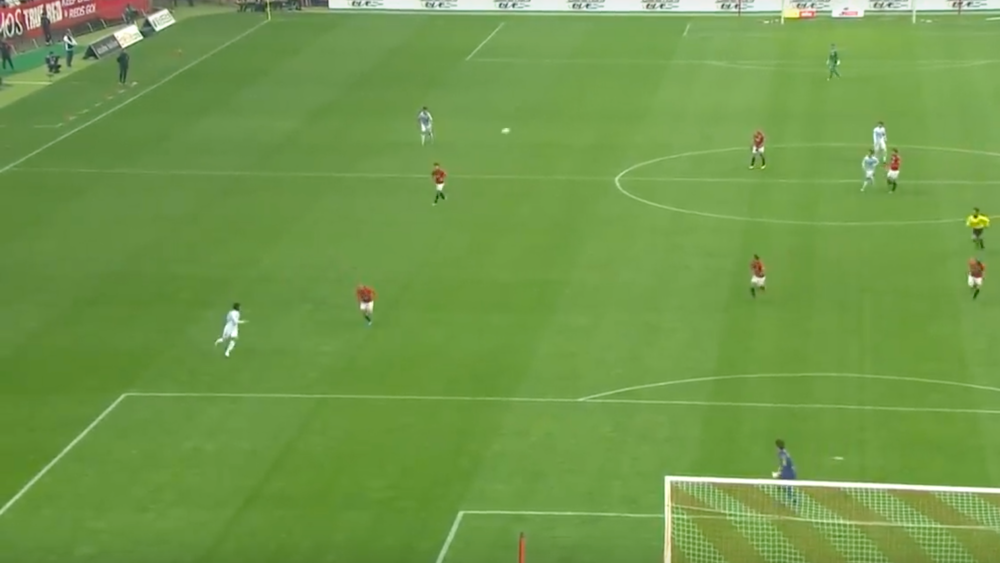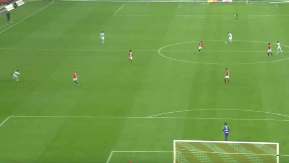 こちらのシーン、まずポイントだったのはDFから福田湧矢へのロングパス。
