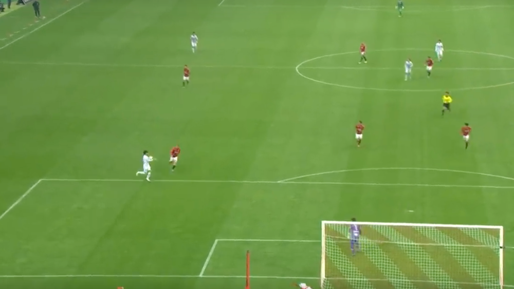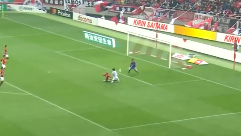 味方DFがついてきていたということもあり、我慢した形に。