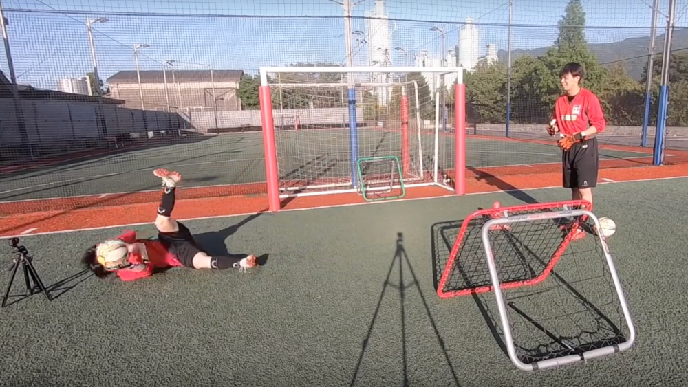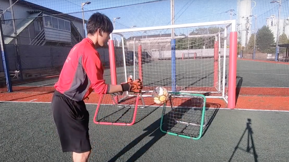 ゴールキーパー練習といえば対面でボールを投げる、もしくは蹴ってもらってキャッチングしたりするだろう。
