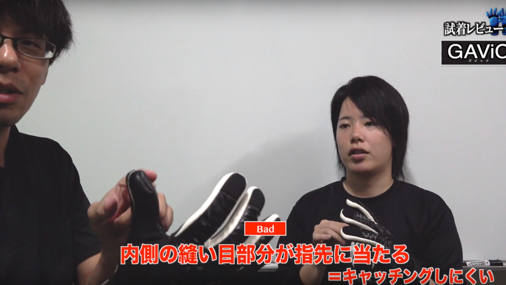 こちらのGAVICのグローブは、内側に縫製されている親指がちょうど縫い目と当たってしまいます。